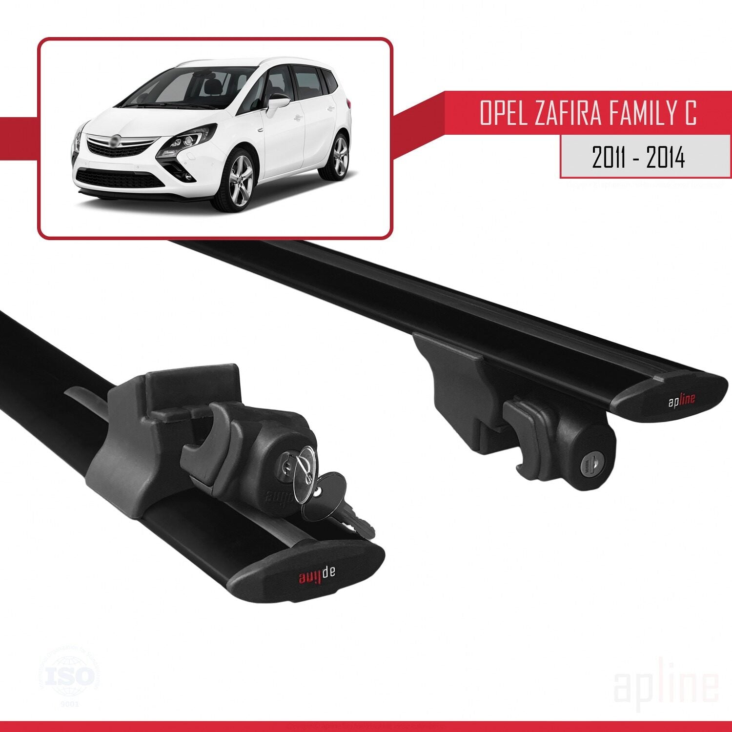 Compatible avec Opel Zafira Family B 2011-2014 HOOK Model Barres de Toit Railing Porte-Bagages de Voiture Noir Aluminium 2 Barres
