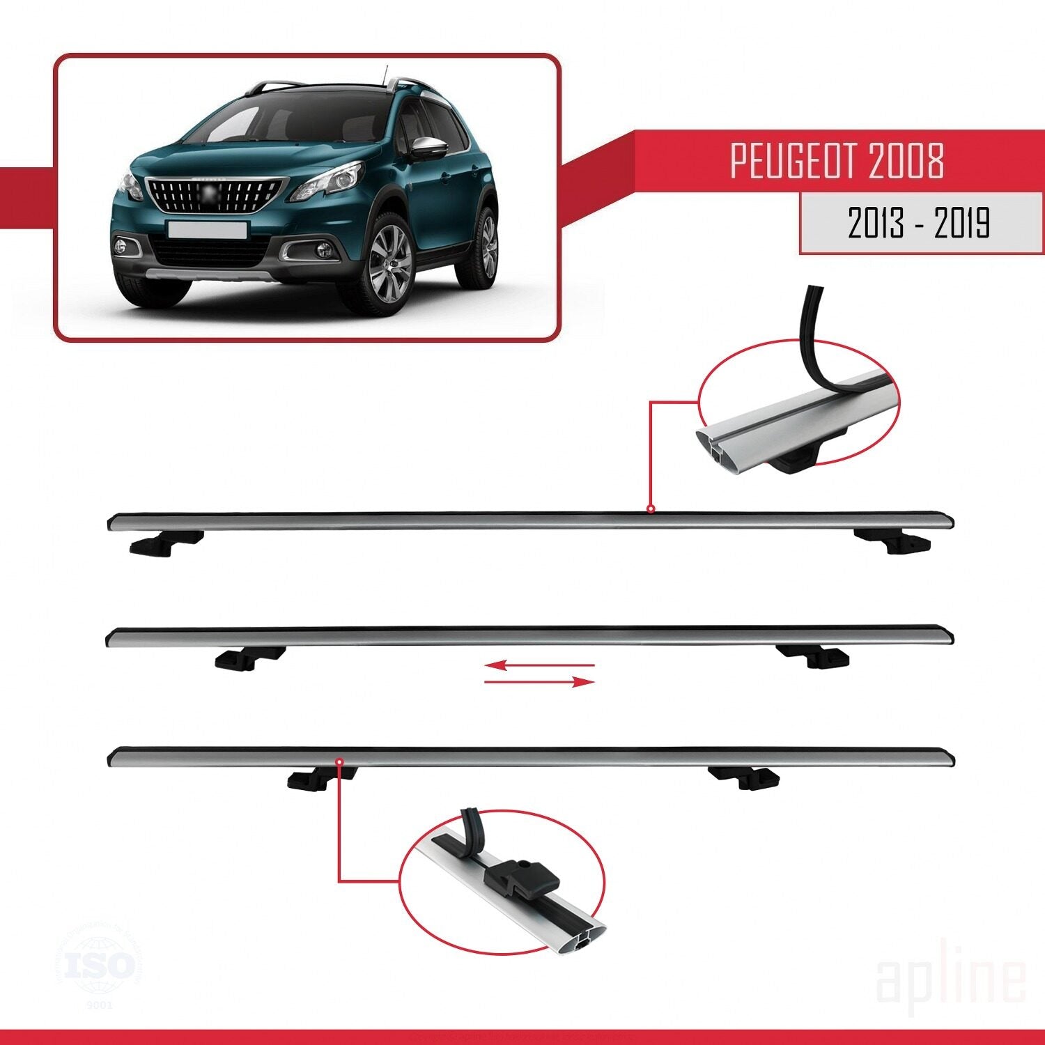 Compatible avec Peugeot 2008 (A94) 2013-2019 BASIC Model Barres de Toit Railing Porte-Bagages de Voiture Gris Aluminium 3 Barres