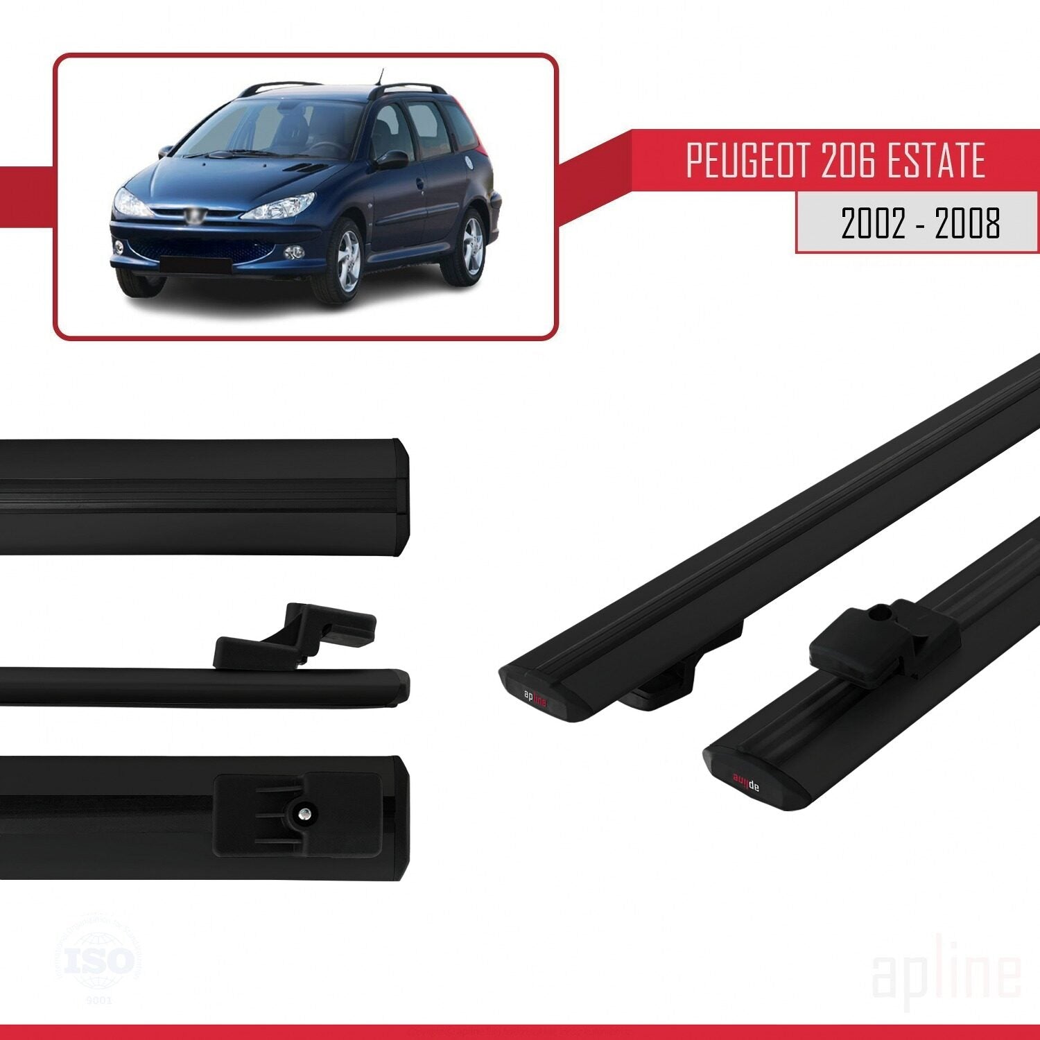 Compatible avec Peugeot 206 Break 2002-2008 BASIC Model Barres de Toit Railing Porte-Bagages de Voiture Noir Aluminium 2 Barres