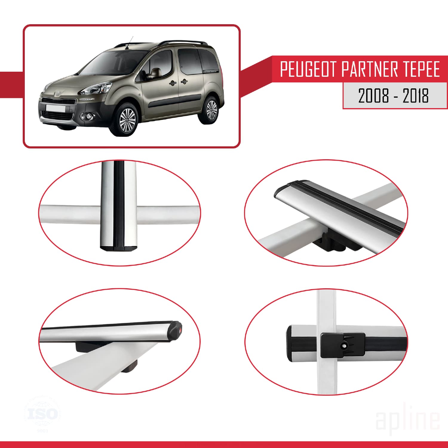 Compatible avec Peugeot Partner 2 Tepee 2008-2018 BASIC Model Barres de Toit Railing Porte-Bagages de Voiture Gris Aluminium 2 Barres