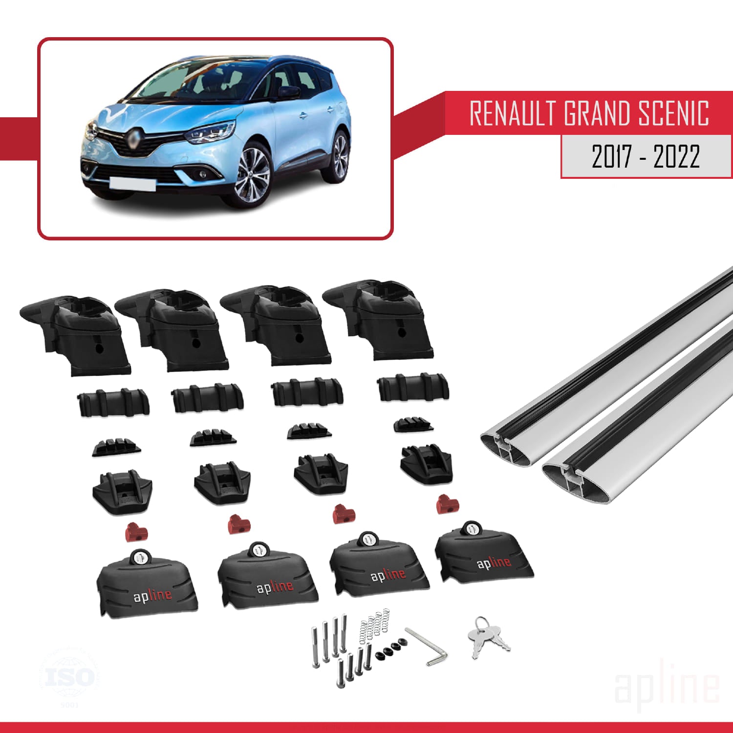 Compatible avec Renault Grand Scenic 4 2017-2022 ACE-2 Barres de Toit Railing Porte-Bagages de Voiture Gris Aluminium 2 Barres