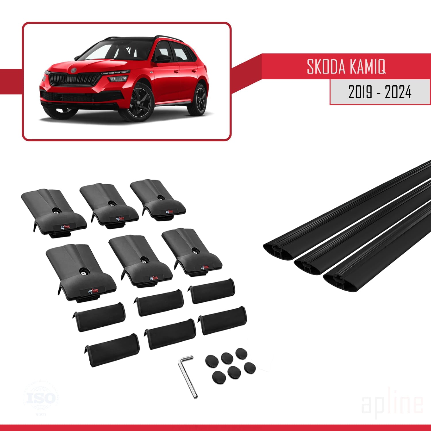 Compatible avec Skoda Kamiq 2019-2025 FLY Model Barres de Toit Railing Porte-Bagages de Voiture Noir Aluminium 3 Barres