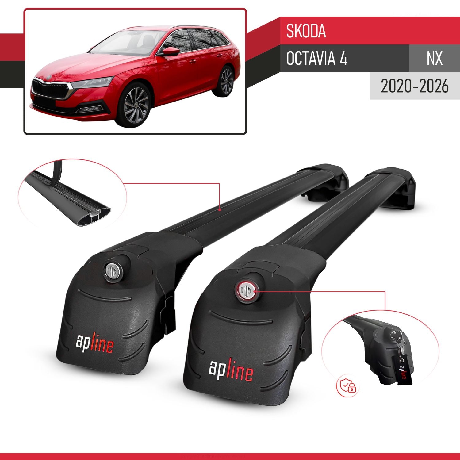 Compatible avec Skoda Octavia 4 (NX) 2020-2026 ACE-2 modèle Barres de Toit Railing Porte-Bagages de Voiture Noir Aluminium Barres