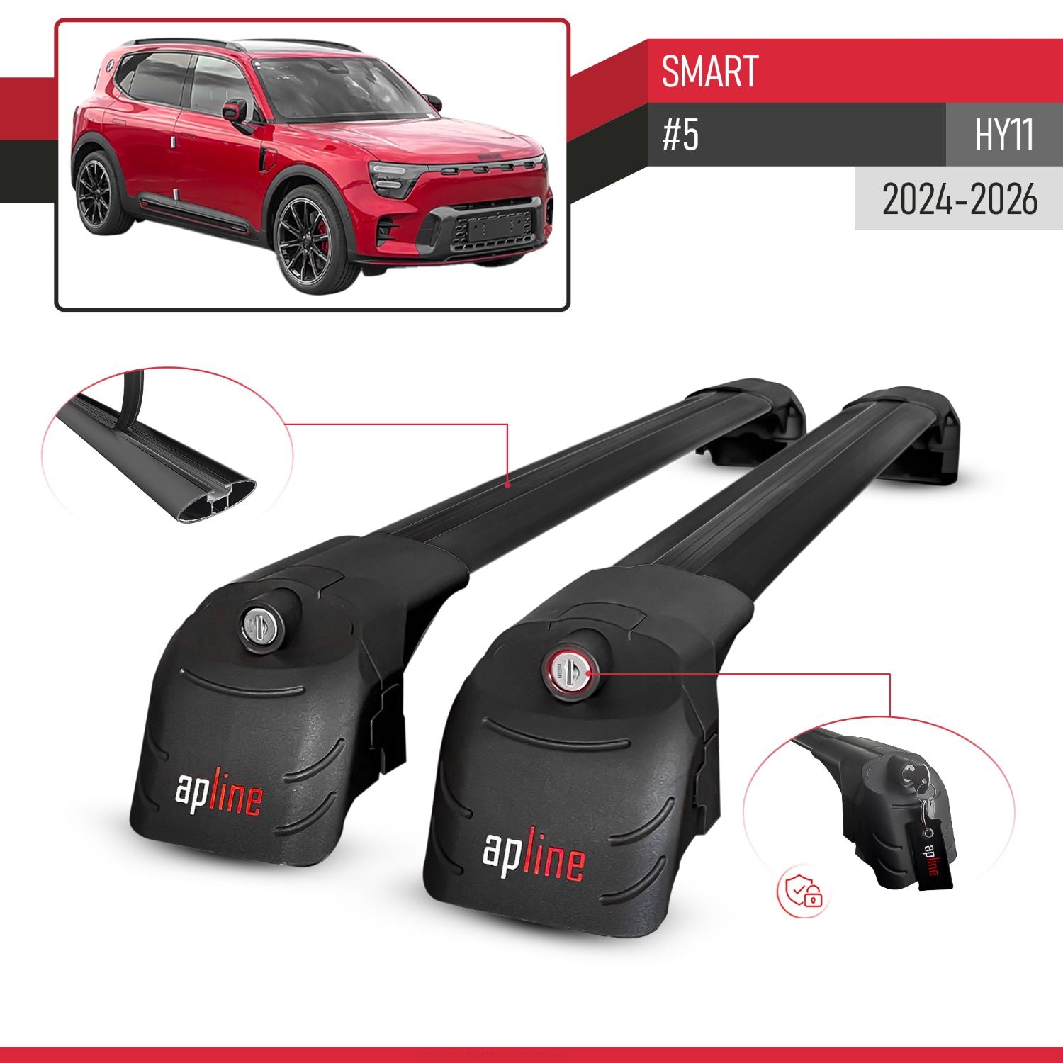 Compatible avec SMART #5 (HY11) 2024-2026 ACE-2 modèle Barres de Toit Railing Porte-Bagages de Voiture Noir Aluminium Barres