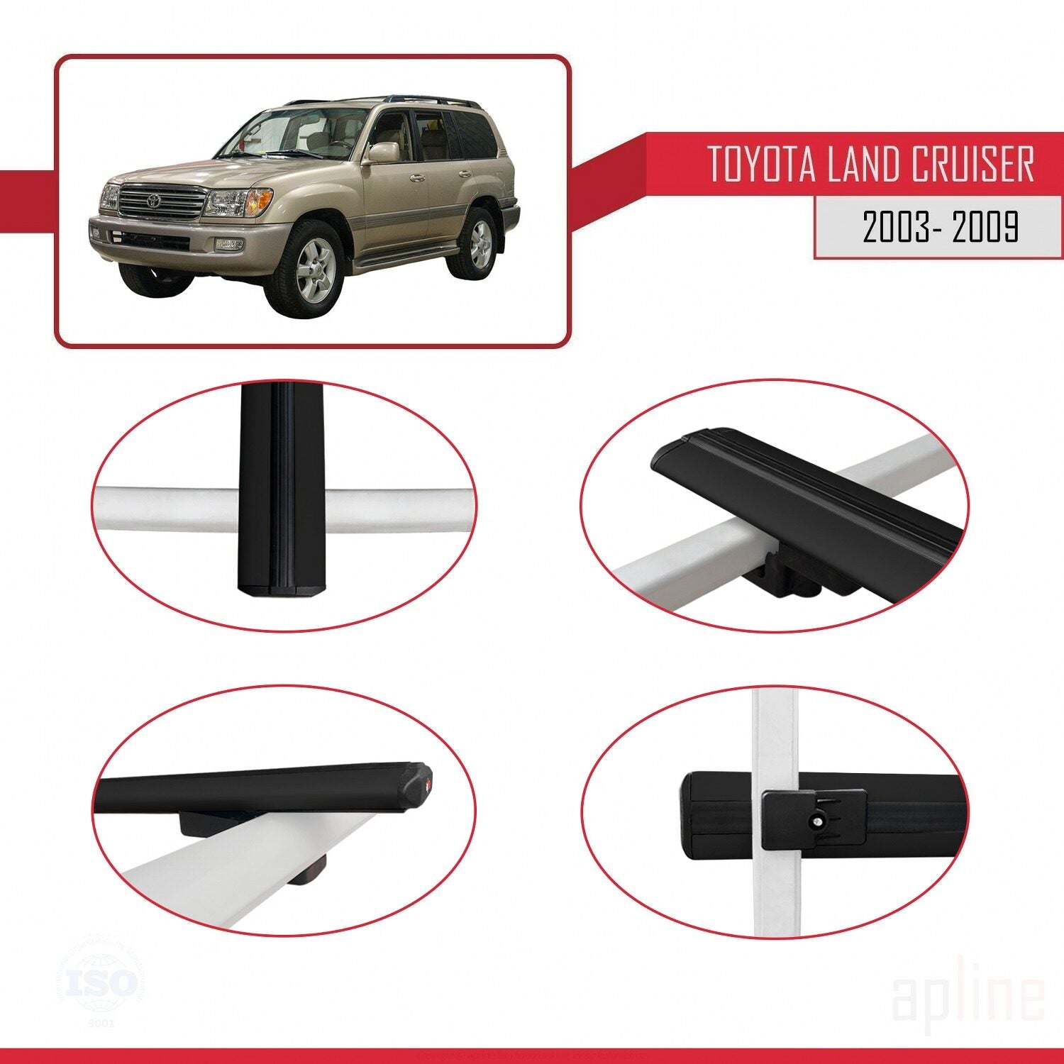 Compatible avec Toyota Land Cruiser (J100) 2003-2007 BASIC Model Barres de Toit Railing Porte-Bagages de Voiture Noir Aluminium 2 Barres