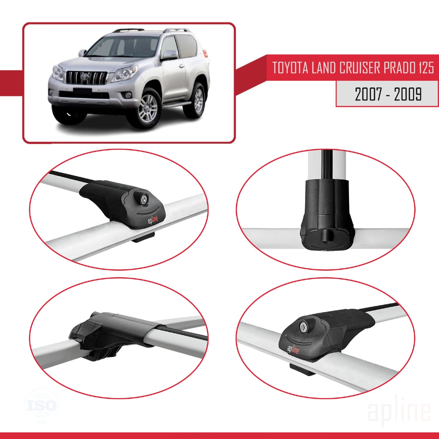 Compatible avec Toyota Land Cruiser Prado (J125) 2007-2009 ACE-1 Barres de Toit Railing Porte-Bagages de Voiture Gris Aluminium 3 Barres
