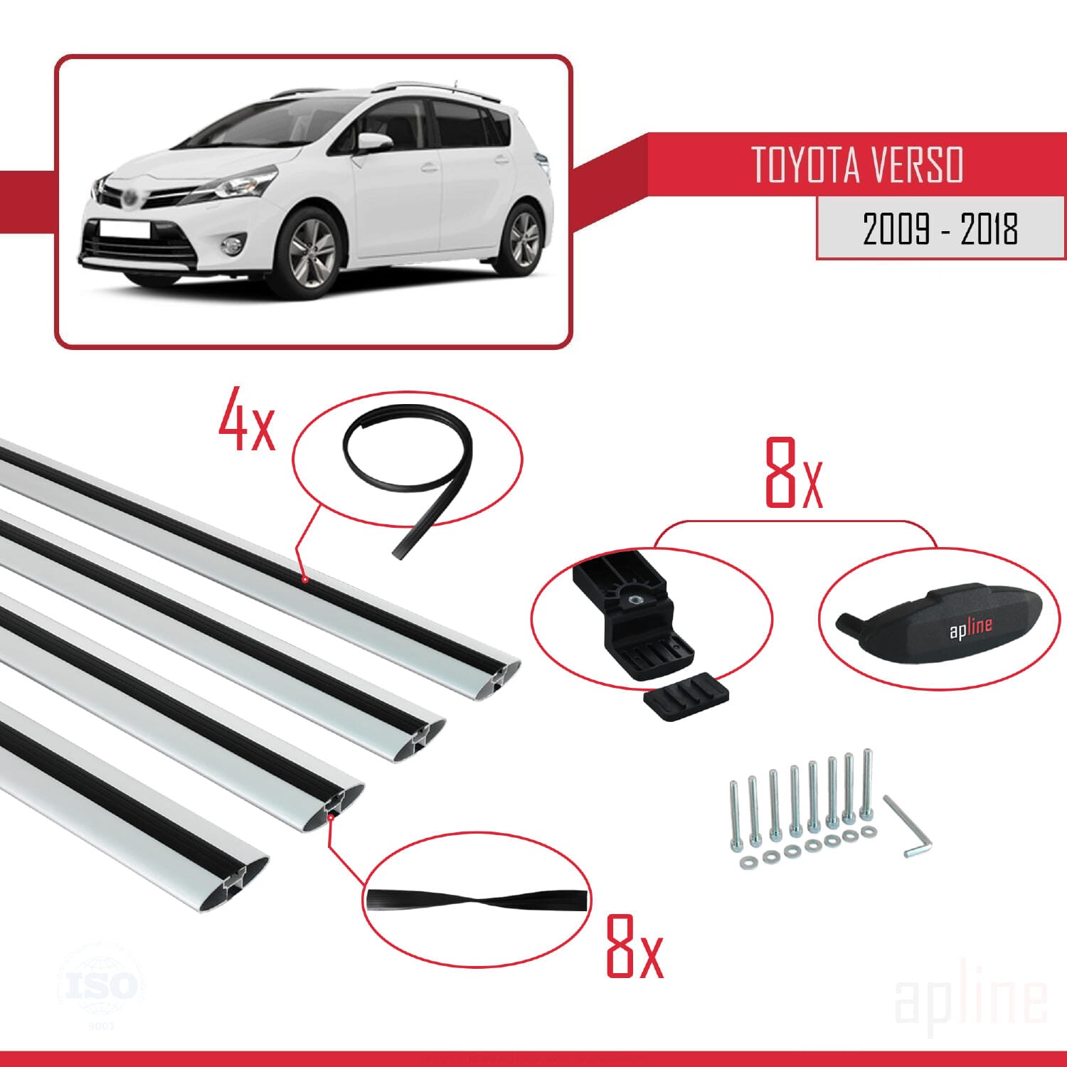 Compatible avec Toyota Verso (AR20) 2009-2018 BASIC Model Barres de Toit Railing Porte-Bagages de Voiture Gris Aluminium 4 Barres