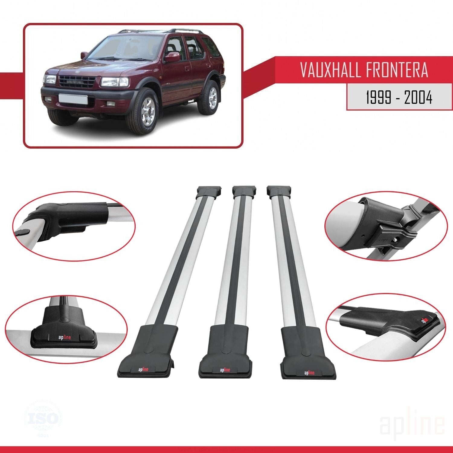 Compatible avec Vauxhall Frontera 2 1999-2004 FLY Model Barres de Toit Railing Porte-Bagages de Voiture Gris Aluminium 3 Barres