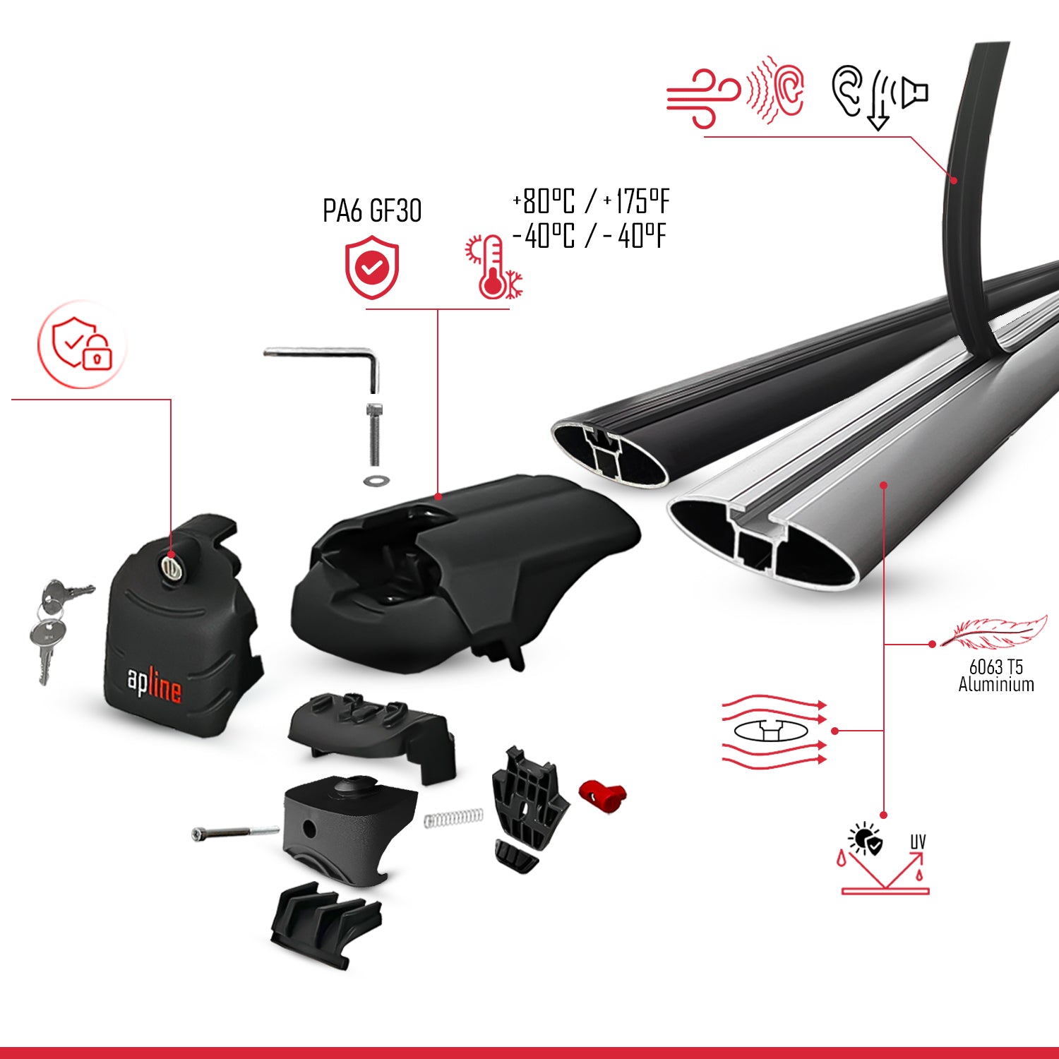 2 barres en aluminium (entièrement compatibles avec le véhicule mentionné dans le titre de l'annonce)