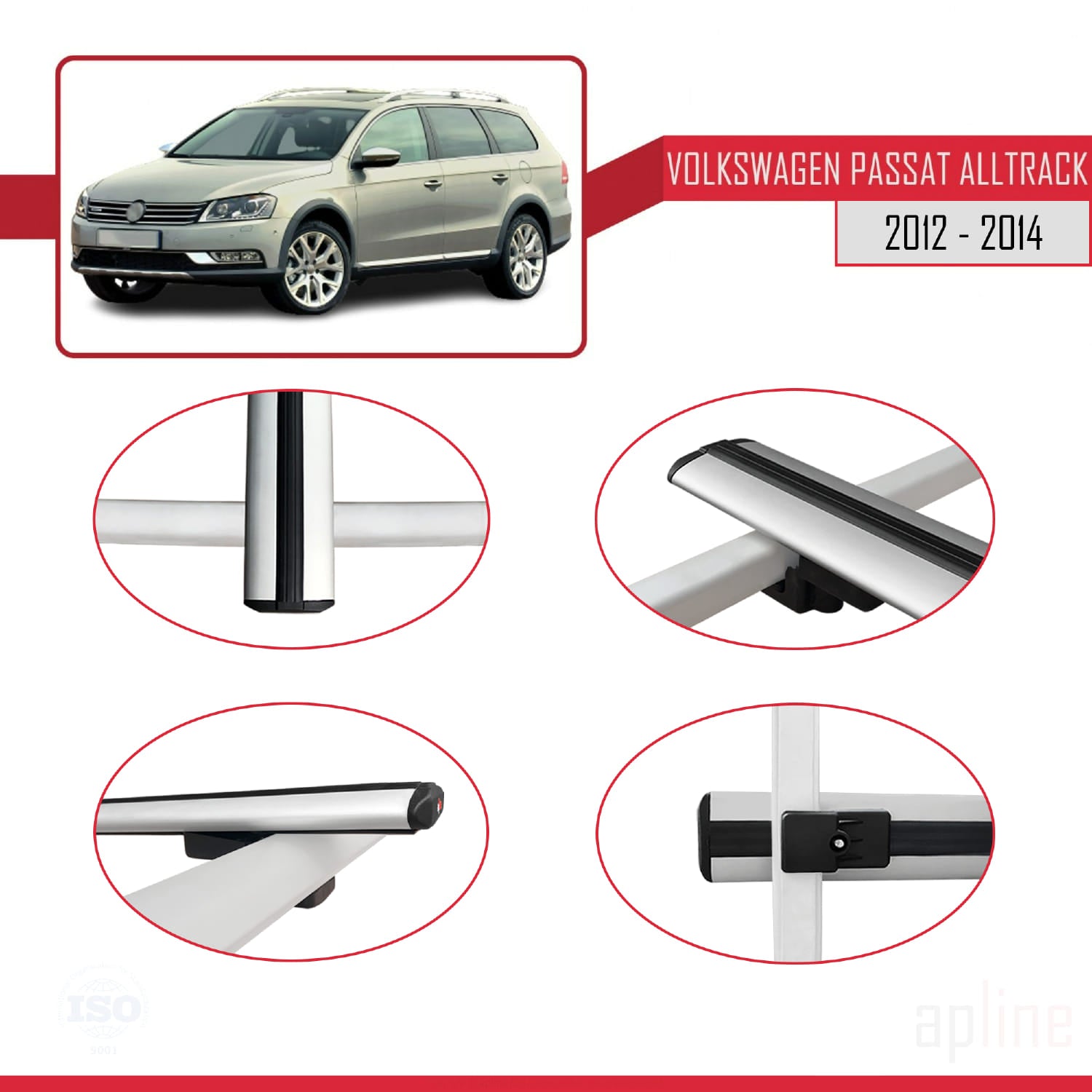 Compatible avec Volkswagen Passat B7 (3C) Alltrack 2012-2014 BASIC Model Barres de Toit Railing Porte-Bagages de Voiture Gris Aluminium 2 Barres