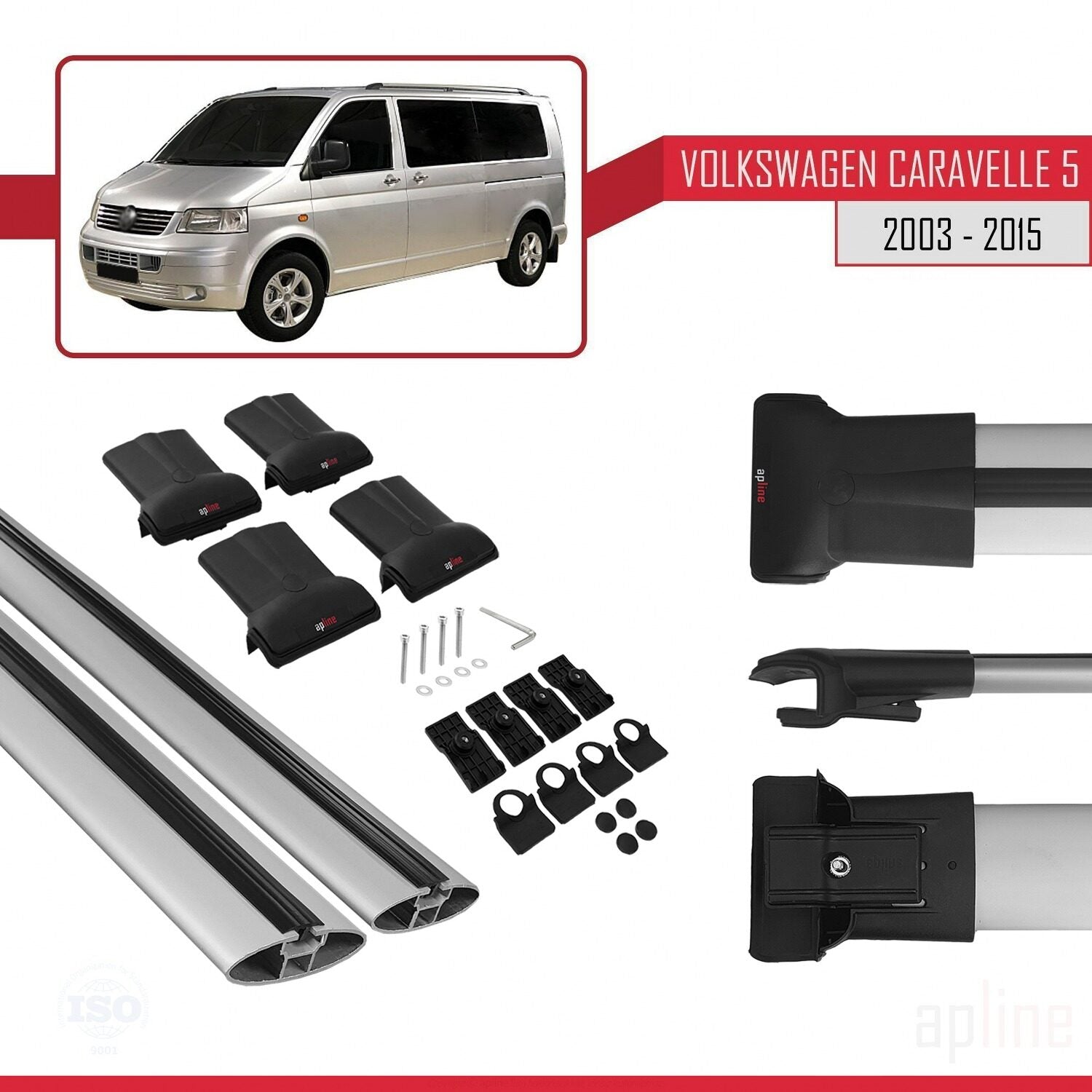 Compatible avec Volkswagen T5 Caravelle 2003-2015 FLY Model Barres de Toit Railing Porte-Bagages de Voiture Gris Aluminium 2 Barres