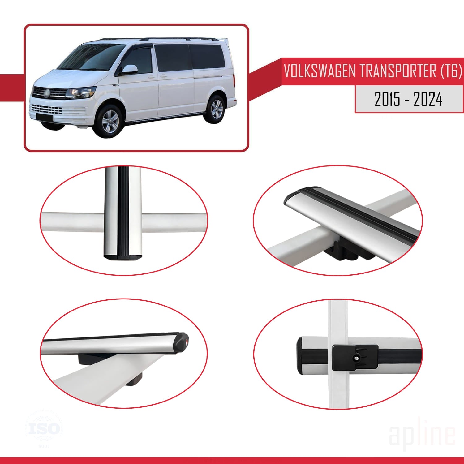 Compatible avec Volkswagen T6 Transporter 2015-2024 BASIC Model Barres de Toit Railing Porte-Bagages de Voiture Gris Aluminium 4 Barres