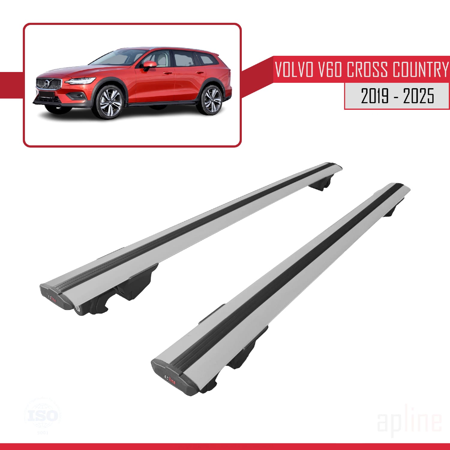 Compatible avec Volvo V60 II Cross Country 2019-2025 HOOK Model Barres de Toit Railing Porte-Bagages de Voiture Gris Aluminium 2 Barres